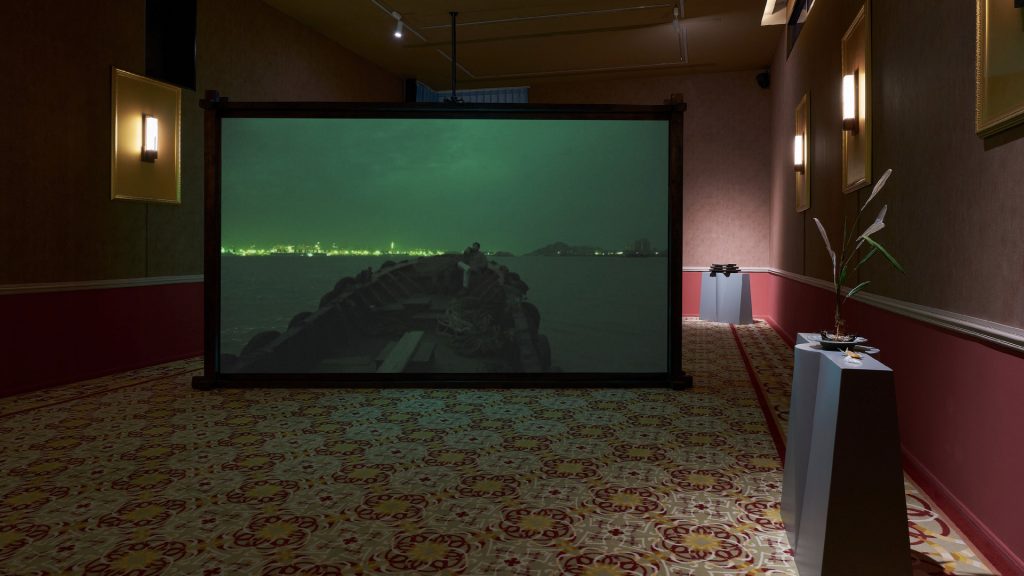 两位面貌相似的表演者在影像中分别扮演大宗商品及其衍生品。它们某晚在港口重逢,感叹自身的飘零宿命,“衍生品”则诉说着去瑞士选择安乐死的愿望。这两个角色与水系网络的画面试图告诉我们,资本为了市场繁荣所创造出的金融衍生品工具常常很快就被无情淘汰。然而,衍生品是否可以拥有选择自己命运的权利?